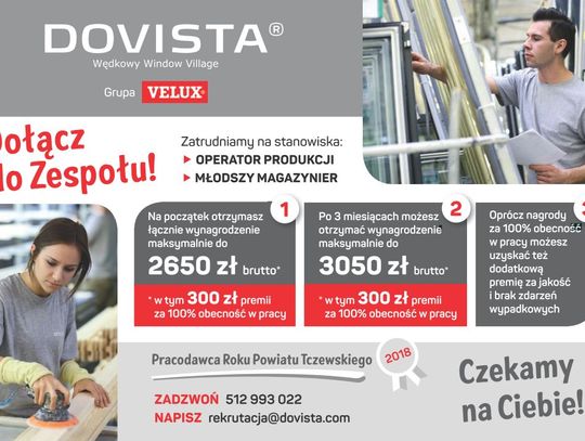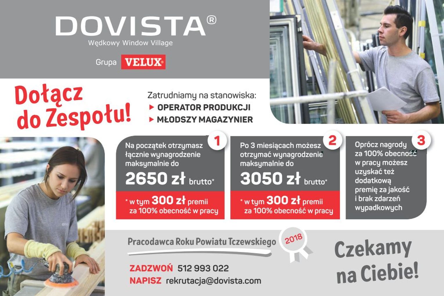DOVISTA Polska została doceniona przede wszystkim za aktywność na lokalnym rynku pracy oraz warunki zatrudnienia, jakie zapewnia. Duże znaczenie dla przyznania tytułu miały też dodatkowe świadczenia przysługujące pracownikom firmy, takie jak darmowy transport do pracy, wyprawki szkolne dla dzieci, dofinansowanie do nauki i studiów, dofinansowanie do karty sportowej, świadczenia świąteczne, bonusy wakacyjne, czy wyprawki dla dzieci świeżo upieczonych rodziców.