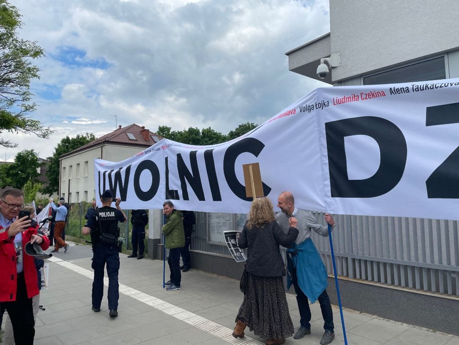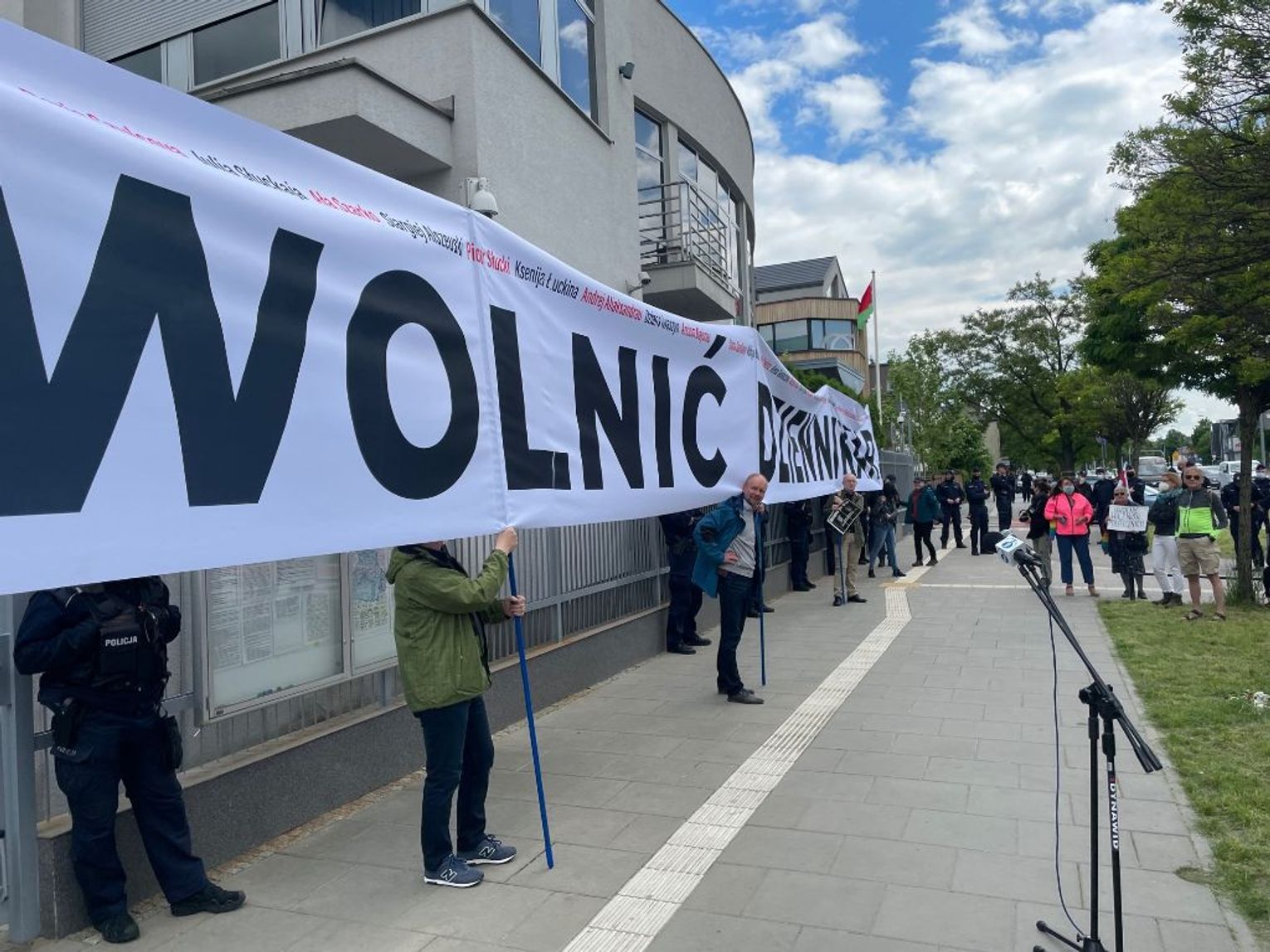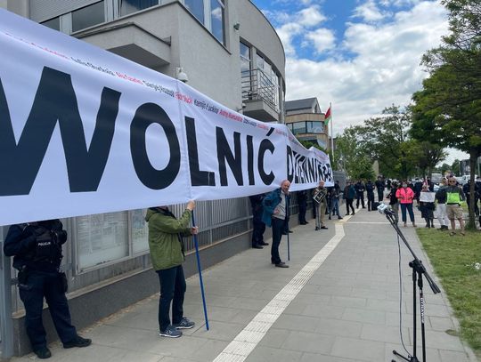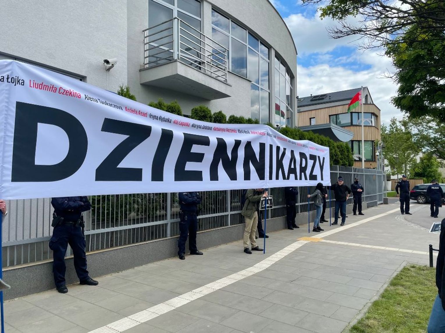 Pod ambasadą Białorusi w Warszawie trwa protest dziennikarzy, sprzeciwiających się zamykaniu w wiezieniach dziennikarzy i opozycjonistów.