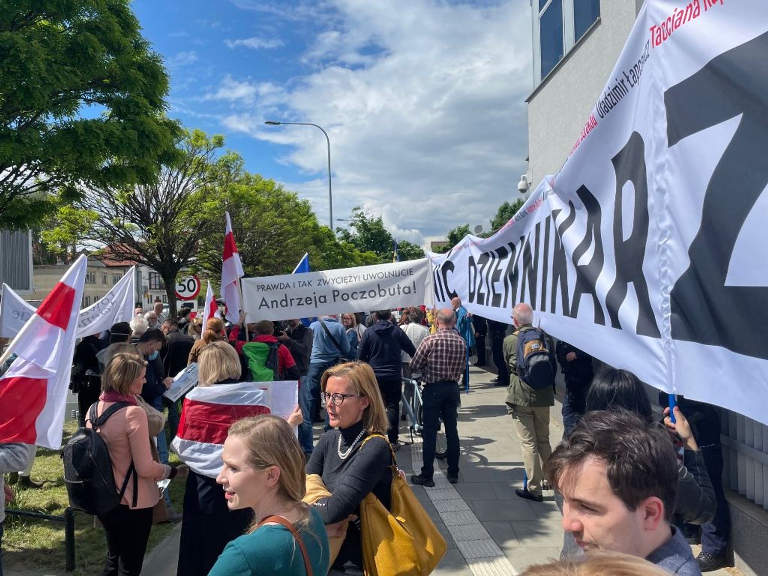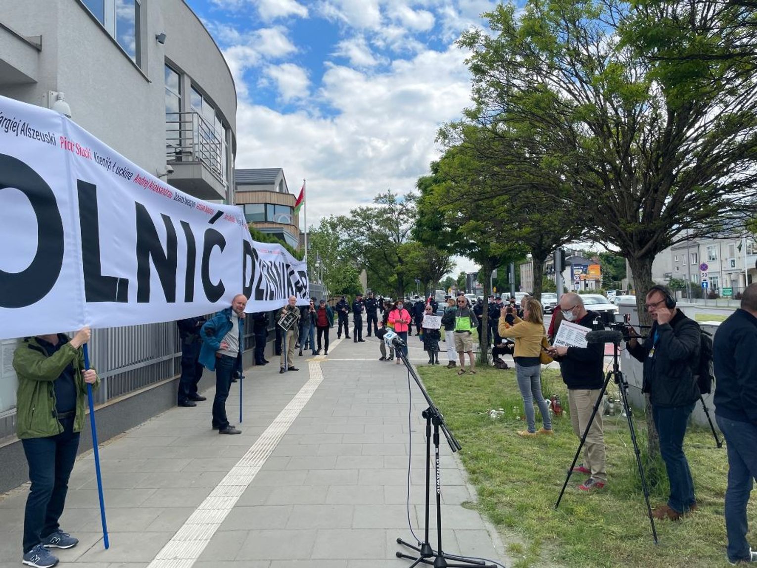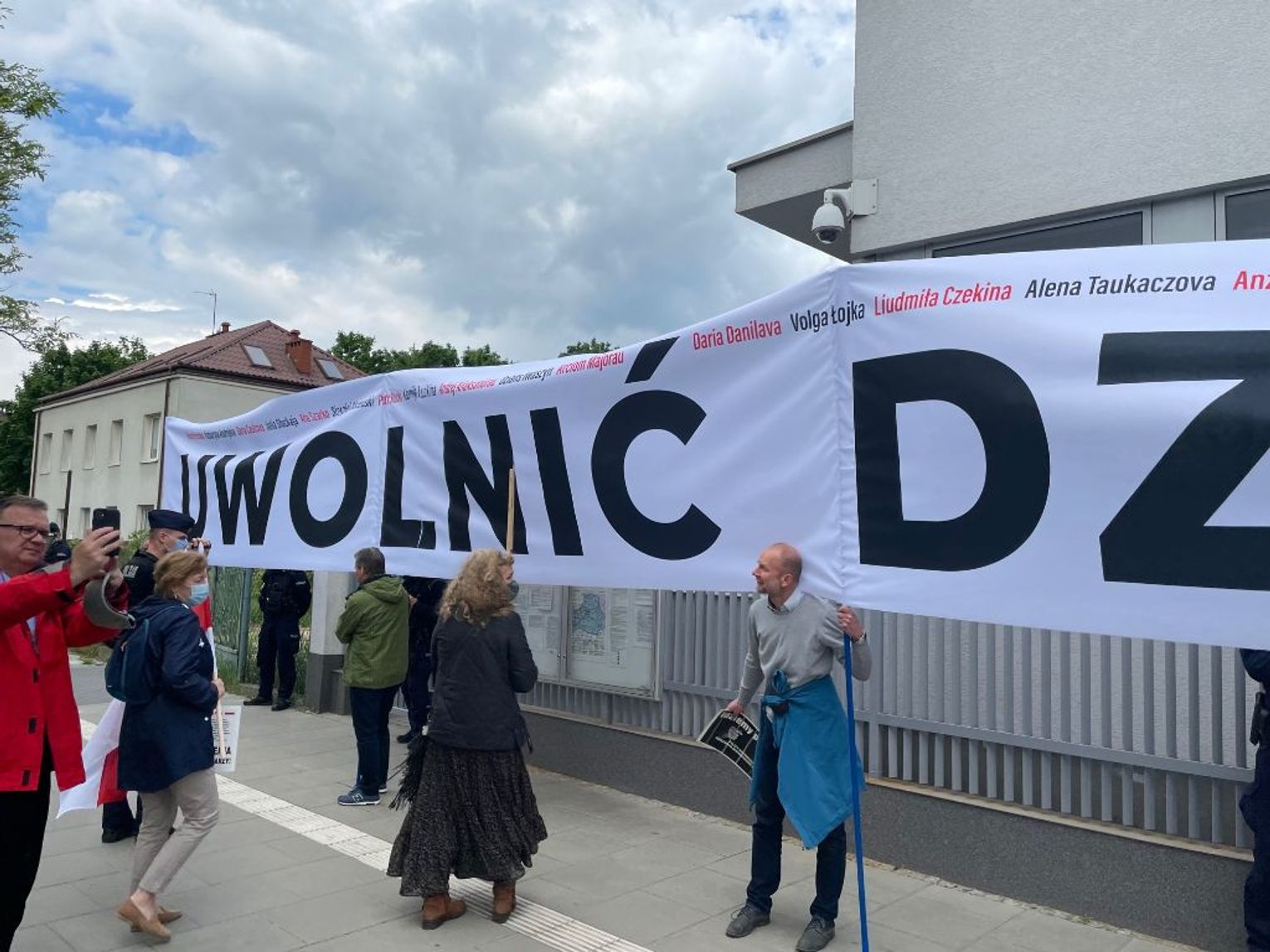 Pod ambasadą Białorusi w Warszawie trwa protest dziennikarzy, sprzeciwiających się zamykaniu w wiezieniach dziennikarzy i opozycjonistów.