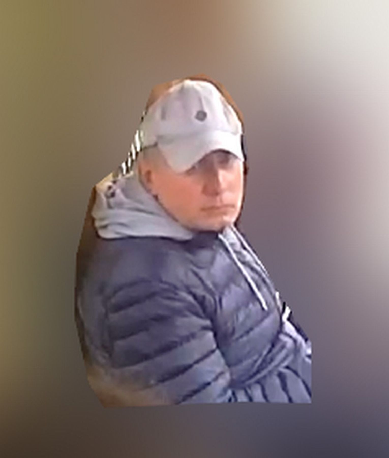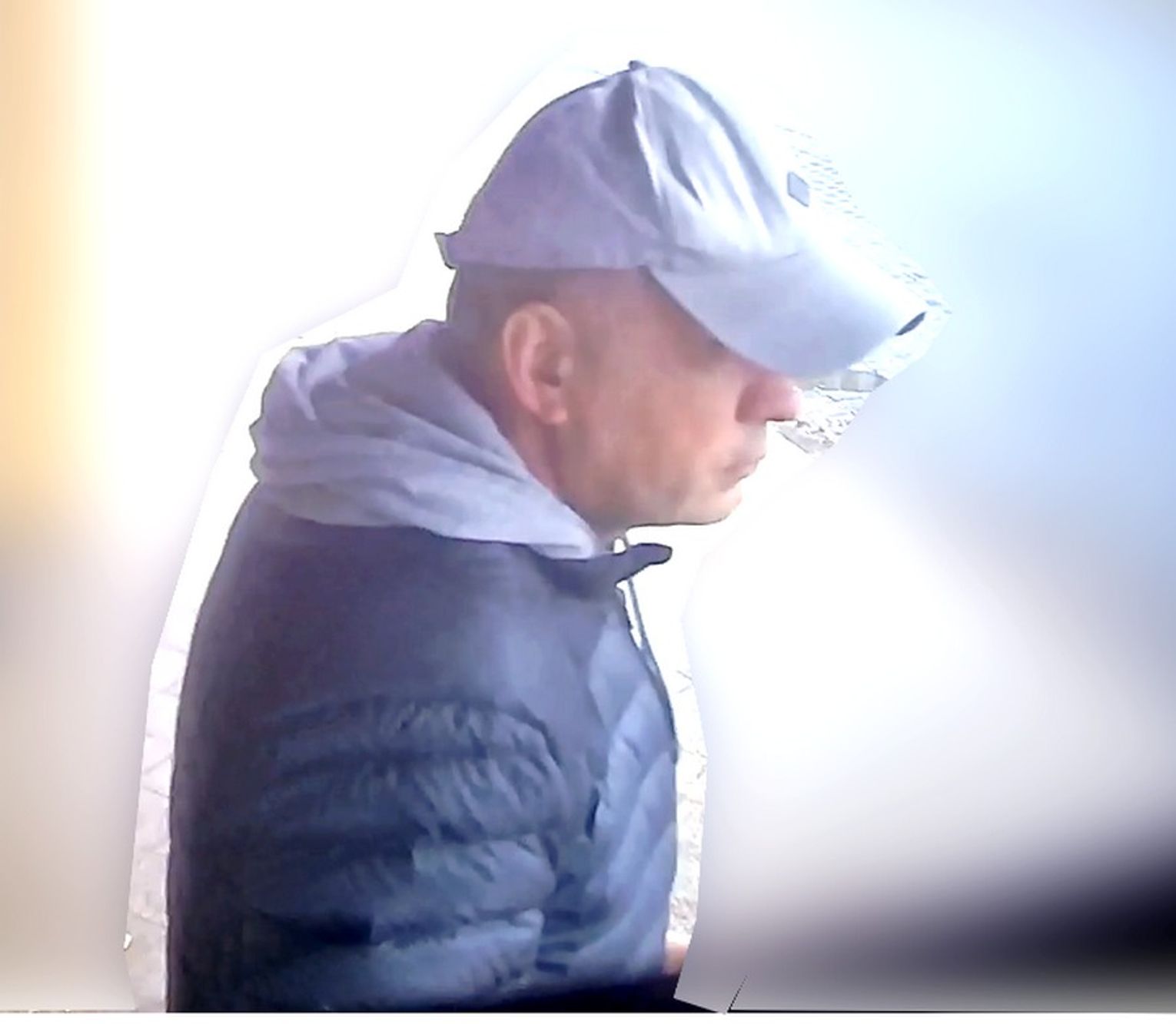 Rysopis mężczyzny: wiek ok. 40 lat, ubrany w spodnie koloru granatowego; granatową, pikowaną kurtkę z wystającym szarym kapturem; buty sportowe ciemne, z jasną podeszwą; założona na głowie jasna czapka z daszkiem; trzymający w ręku torbę podróżną.