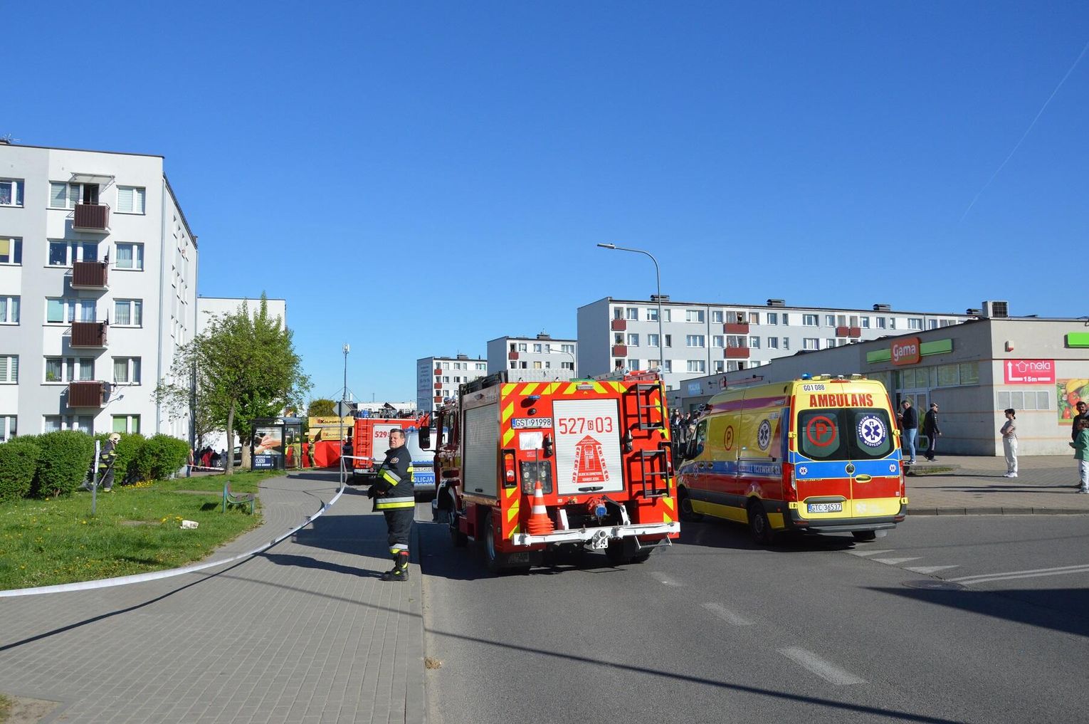 Na miejsce natychmiast skierowano liczne siły i środki ratunkowe. W akcji brało udział aż 10 zastępów Straży Pożarnej: 5 z Jednostki Ratowniczo-Gaśniczej w Starogardzie Gdańskim, 2 z OSP Starogard Gdański, a także jednostki z OSP Klonówka, OSP Pinczyn i OSP Koteże. Na miejsce przybyły również 4 Zespoły Ratownictwa Medycznego, policja, straż miejska oraz pogotowie energetyczne i gazowe.