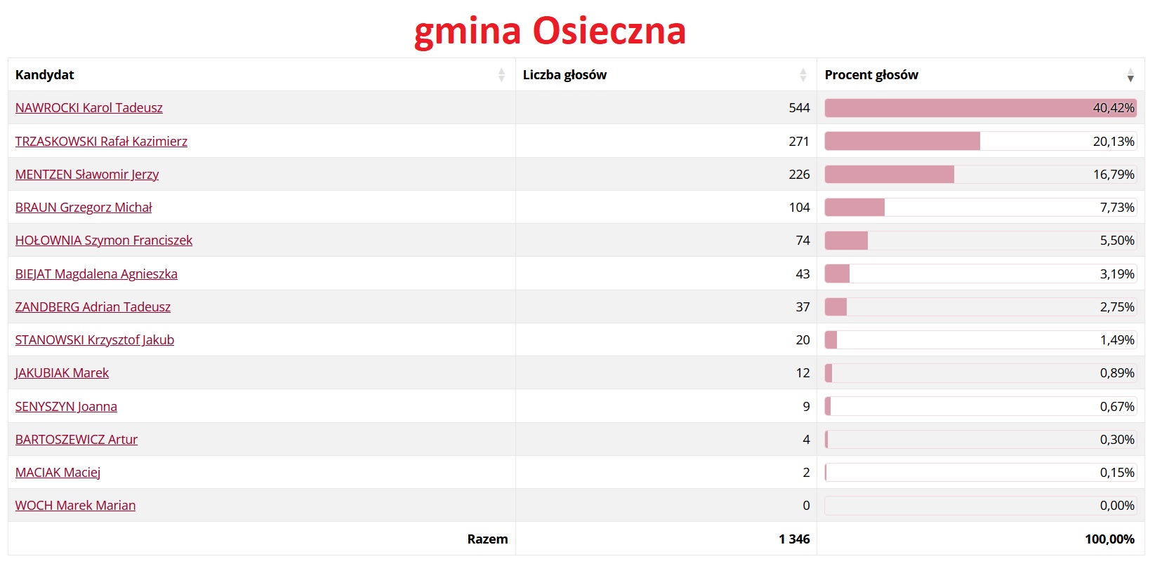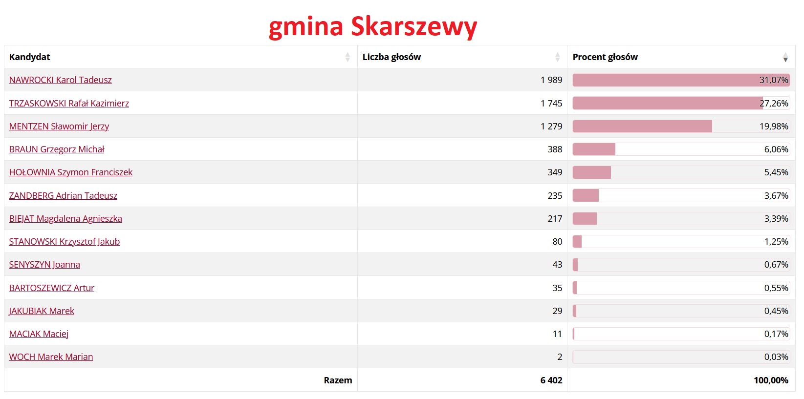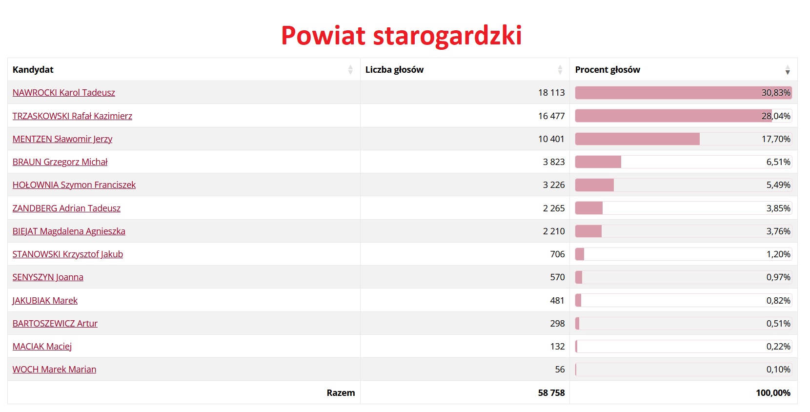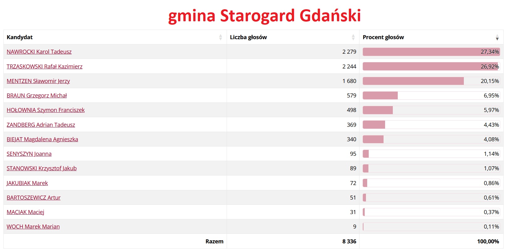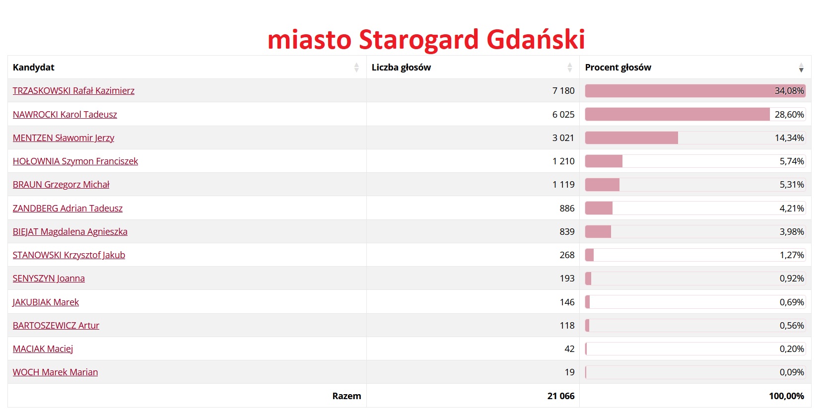 [ZESTAWIENIE] Jak głosowali mieszkańcy poszczególnych gmin powiatu starogardzkiego? Najwięcej głosów zdobył Karol Nawrocki