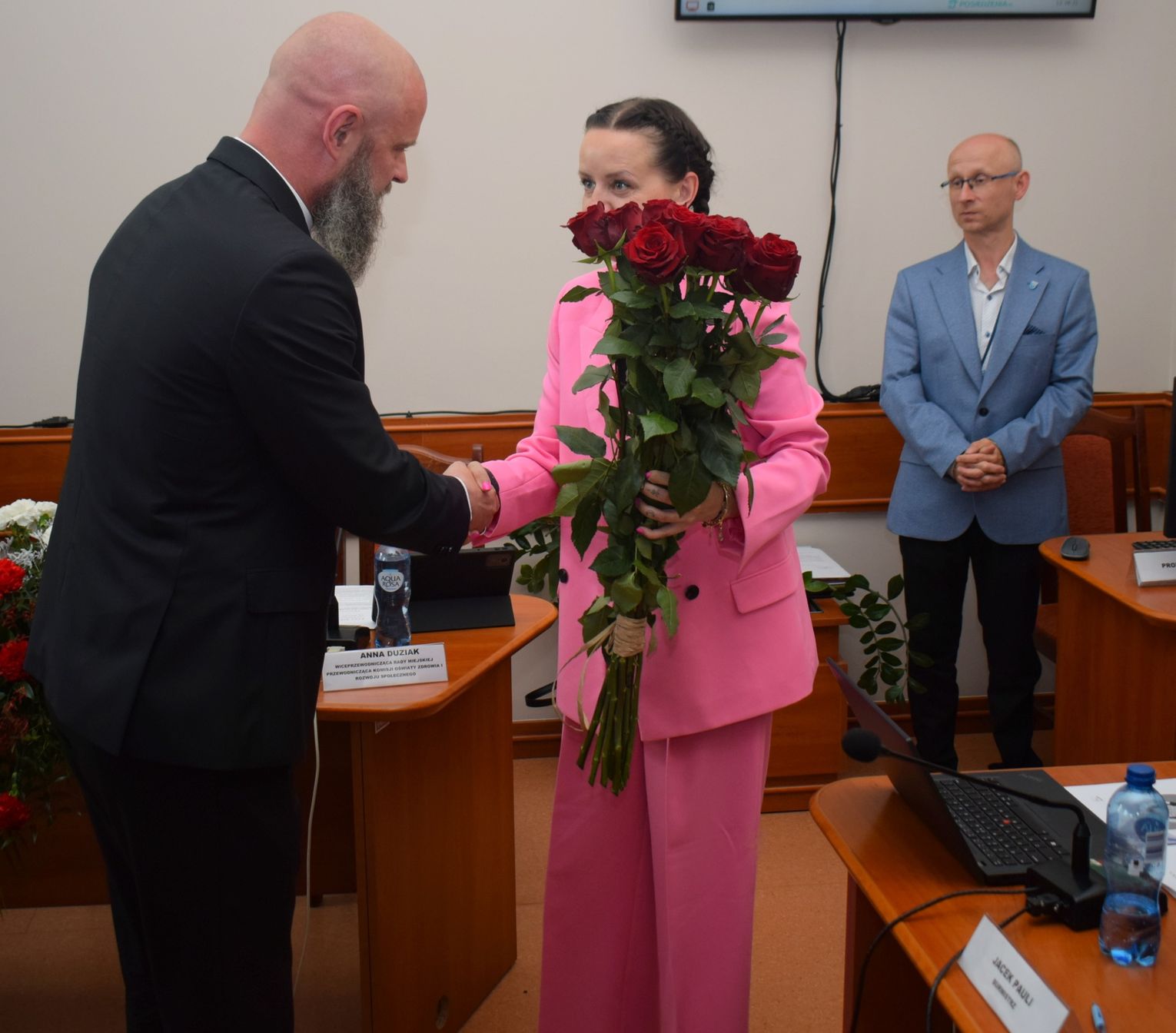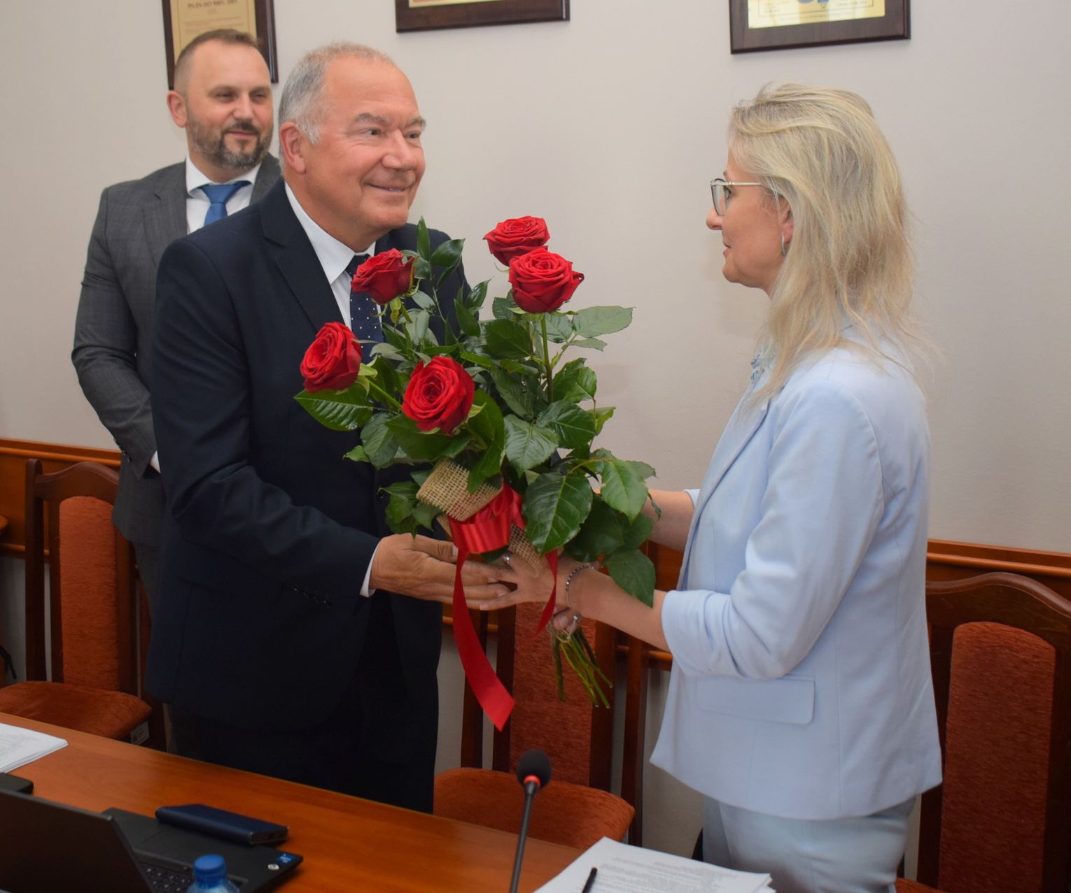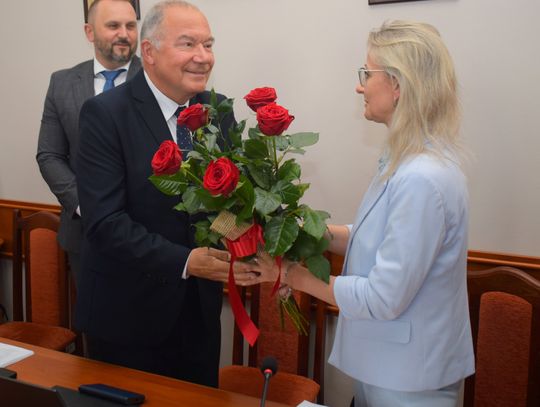 Doceniono też pracę skarbnik gminy Sabiny Spierewki, która – podobnie jak burmistrz - otrzymała bukiet kwiatów, a wręczył go pani skarbnik przewodniczący Rady Miejskiej Stefan Troka.