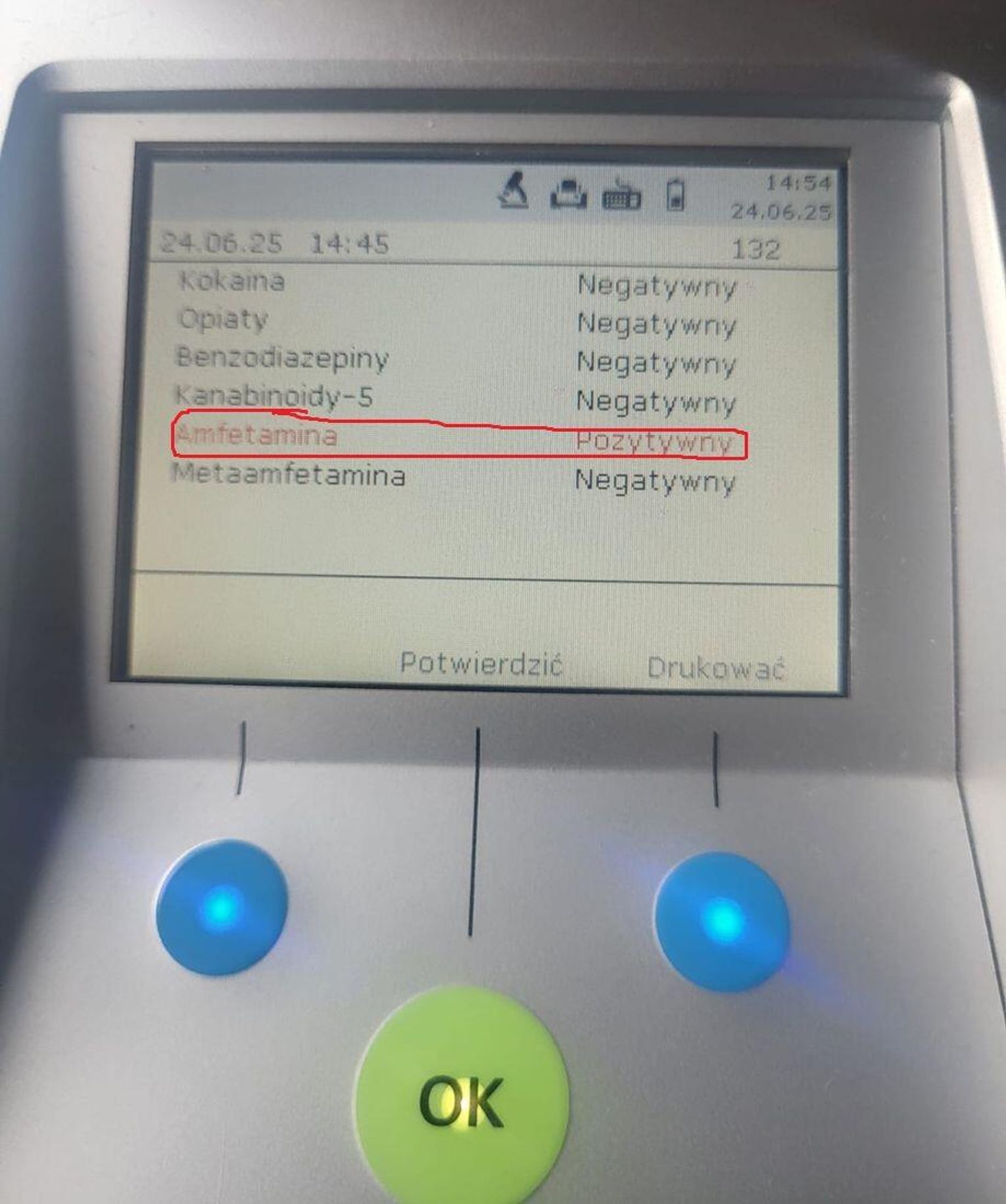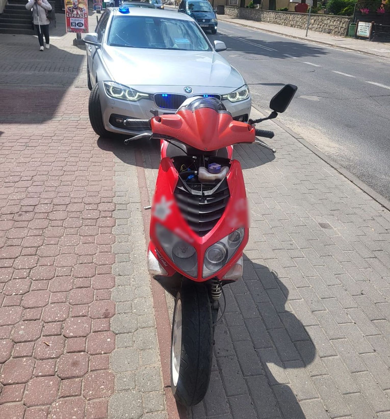 O godz. 14.30 policjanci w nieoznakowanym bmw zatrzymali do kontroli drogowej kierującego motorowerem. Podczas kontroli okazało się, że jednoślad nie posiada aktualnych badań technicznych, a 20-letni kierujący nie ma uprawnień. W trakcie kontroli mężczyzna zachowywał się nerwowo, był pobudzony, a jego źrenice były mocno rozszerzone. Policjanci wykonali badanie śliny na obecność narkotyków i urządzenie wykazało, że mężczyzna jest pod działaniem amfetaminy. 20-latek został zatrzymany i przetransportowany do szpitala, gdzie pobrano od niego krew do dalszych badań.