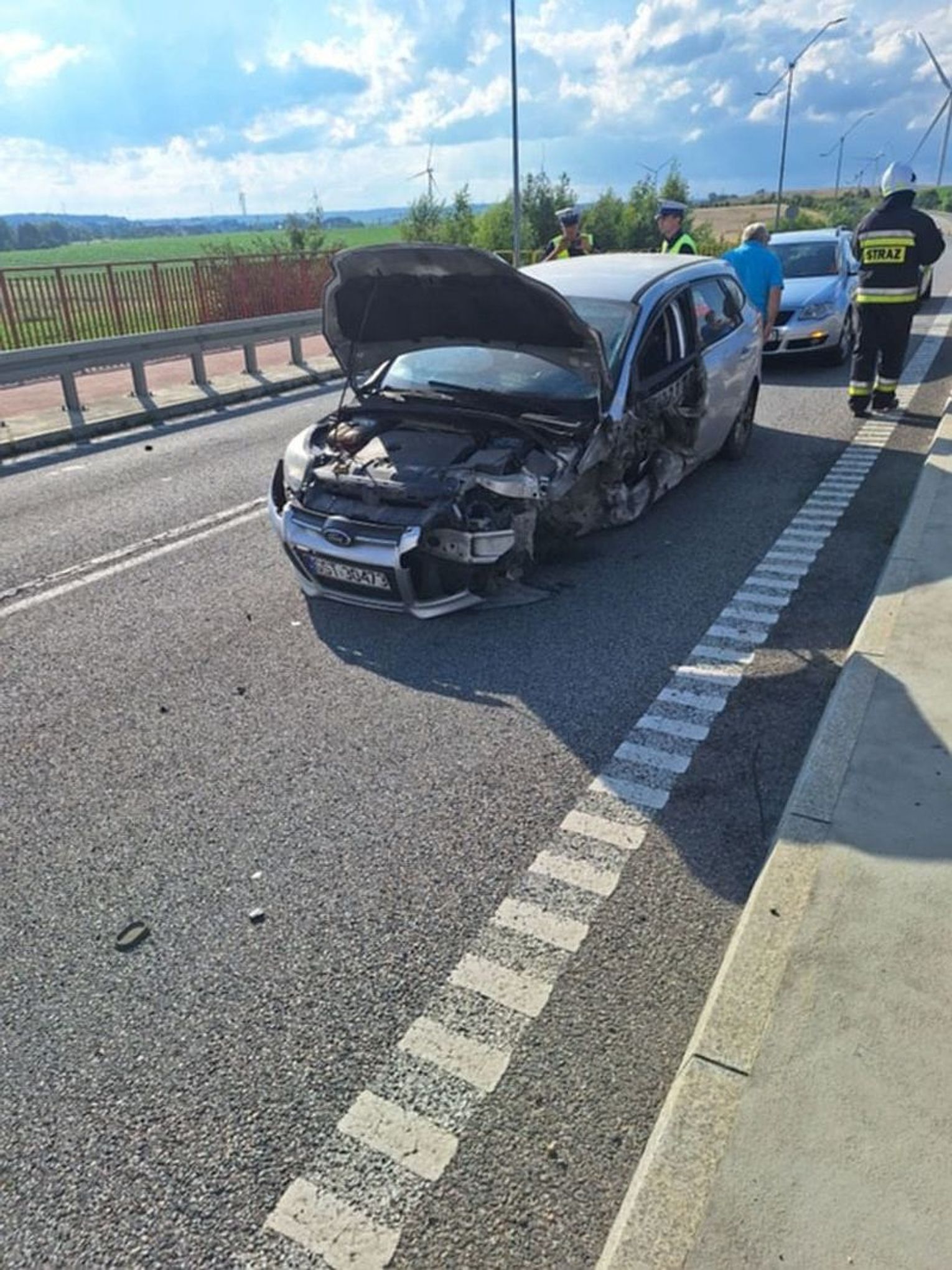- W Pelplinie na Alei Kociewskiej (obwodnica Pelplina) nad wiaduktem kolejowym miało miejsce zderzenie dwóch pojazdów osobowych – informuje kpt. Michał Myrda, rzecznik Komendy Powiatowej Państwowej Straży Pożarnej. - Droga została zablokowana w obu kierunkach. Puegeot, w którym podróżowało 5 osób w tym 18 latek i dzieci 10 i 9 lat. Ta trójka była przytomna. Pod wpływem zdarzenia doznała obtarć i ogólnych potłuczeń.
