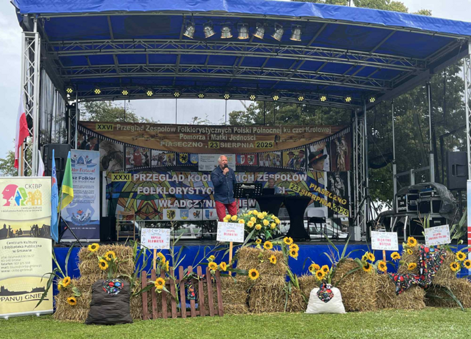 – Znajdujemy się w Piasecznie, w gminie Gniew, w najstarszym sanktuarium na Pomorzu. Spotykamy się tutaj już po raz 31. – mówi prezes stowarzyszenia Piaseczno Folklor Festiwal, Krzysztof Luchowski. – Pierwsze przeglądy zespołów odbywały się przy szkole, na niewielkiej scenie, a dziś wydarzenie zyskało profesjonalną oprawę. Folklor pokazuje nam, jak tradycje naszych dziadków i przodków są pielęgnowane w tych małych ojczyznach.