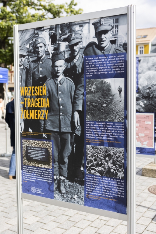 Wystawa elementarna Zbrodnie niemieckie i sowieckie na Polakach 1939-1945 prezentuje najważniejsze informacje na temat zbrodni dokonanych przez okupantów niemieckich i sowieckich na obywatelach polskich w latach wojny i okupacji 1939-1945.
