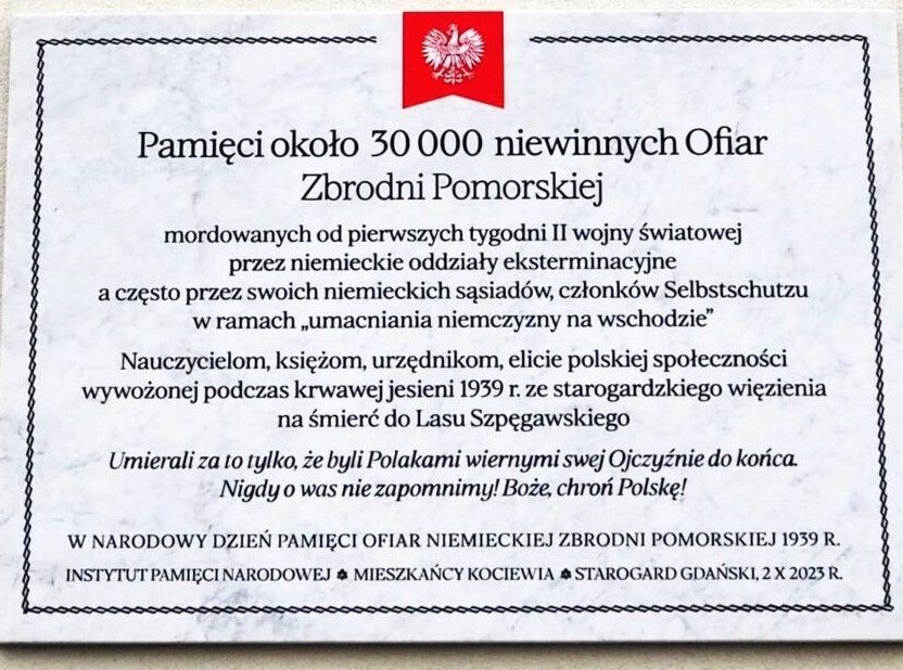 Uroczystości rozpoczną się o godzinie 18.00 przed murem starogardzkiego więzienia, gdzie Niemcy przetrzymywali, torturowali i upokarzali swoje ofiary przed ich wywózką na śmierć do Lasu Szpęgawskiego. Pod tablicą upamiętniającą ofiary złożone zostaną kwiaty i zapalone znicze. Następnie uczestnicy przejdą do kościoła św. Wojciecha, gdzie odprawiona zostanie Msza Św. koncelebrowana w intencji pomordowanych i Ojczyzny.