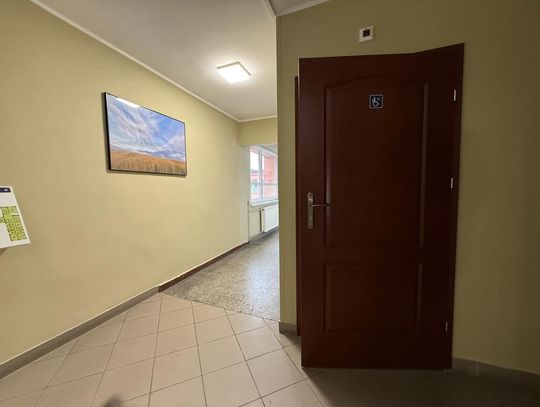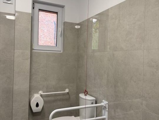Dodatkowo toaleta została wyposażona w przewijak dla małych dzieci, co sprawia, że z pomieszczenia mogą wygodnie korzystać również osoby z niemowlętami. Toaleta znajduje się na I piętrze, budynek urzędu wyposażony jest w windę.
