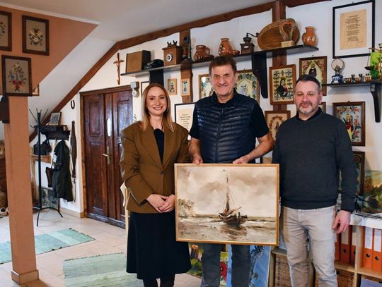 Potem przyszedł czas na wywiad, który powstał w ramach szkolnego cyklu „Rozmowy z Kasztelańskiej 3”. A na koniec – wizyta w bytońskiej Izbie Regionalnej, która zachwyciła podróżnika. Na pamiątkę wizyty w Bytoni Marek Kamiński otrzymał przepiękny obraz, który powstał podczas ostatniego pleneru bytońskiego. Wręczył go Tomasz Damaszk, dyrektor szkoły w Bytoni - inicjator, organizator i gospodarz tego wyjątkowego spotkania.
