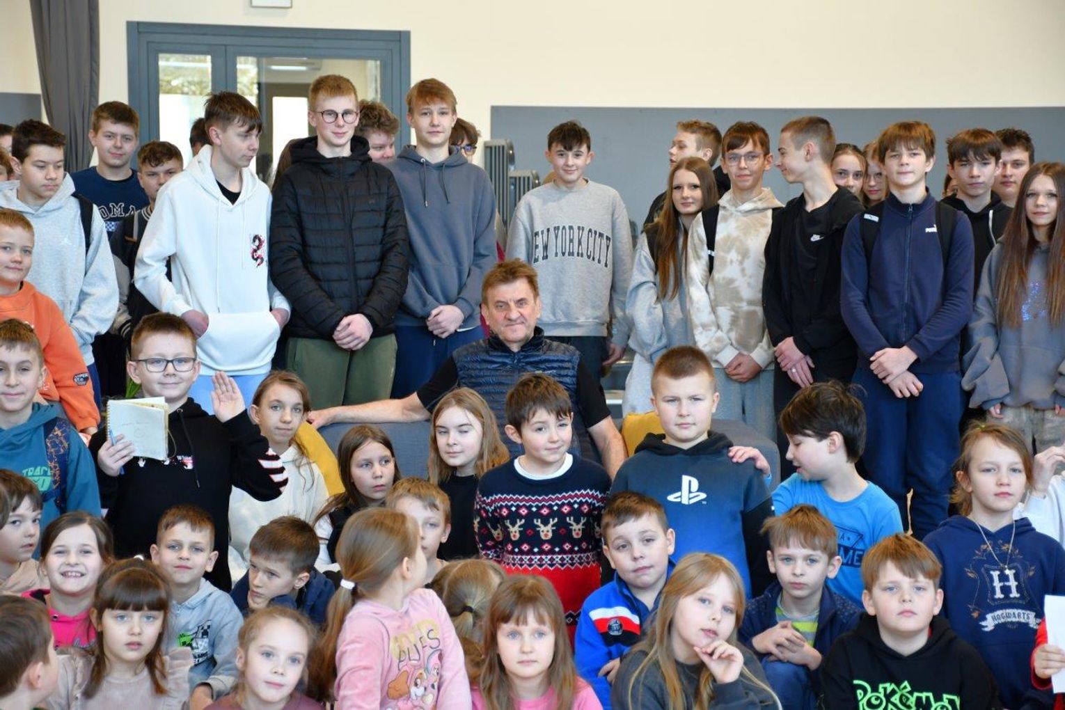 Wizyta w Bytoni rozpoczęła się od spotkania z dziećmi i młodzieżą. Marek Kamiński opowiadał o swoich wyprawach i przeżyciach, z wielką otwartością odpowiadając na pytania szkolnej publiczności. A pytań nie brakowało!
