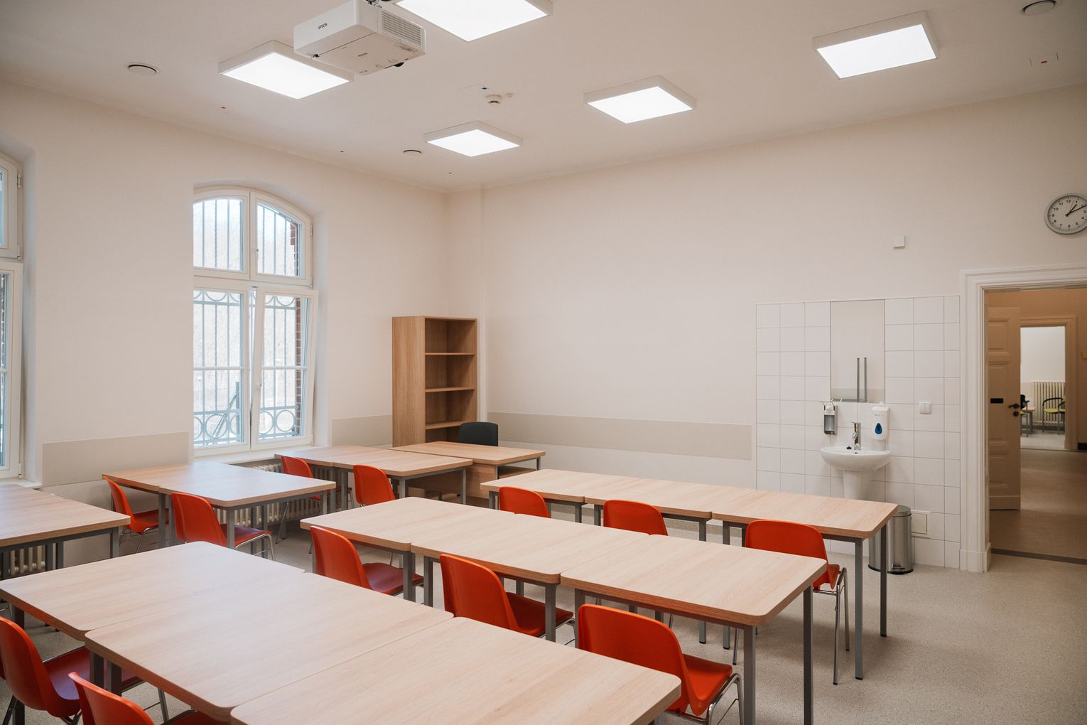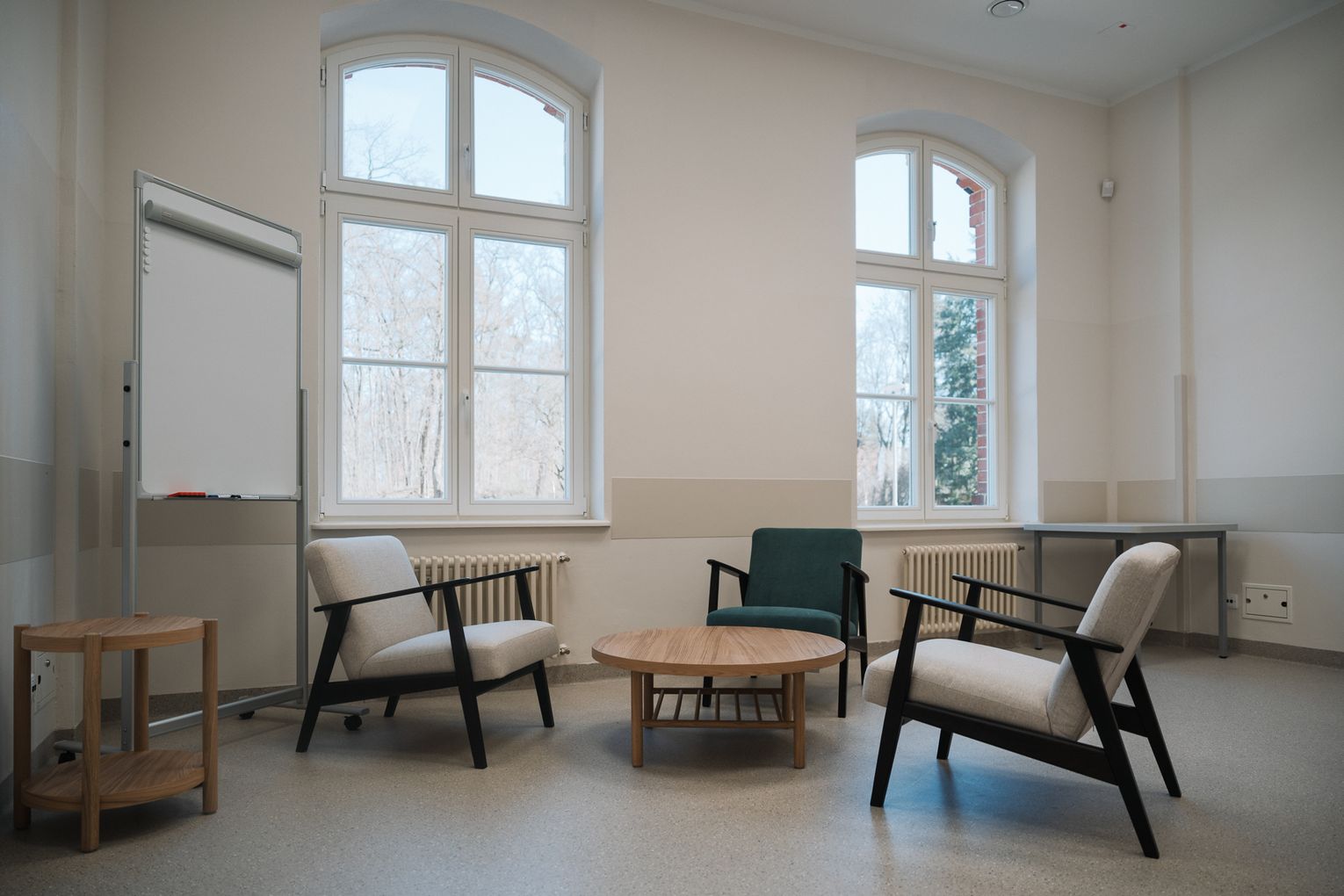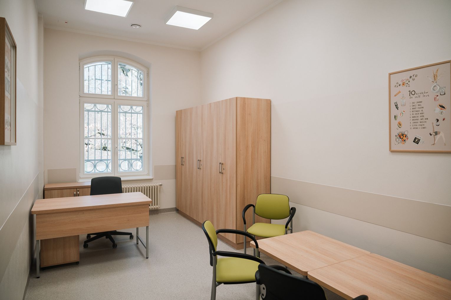 W trakcie modernizacji naprawiono ceglaną elewację, parapety i gzymsy, odnowiono lub zamontowano nowe okna i drzwi, wymieniono i pomalowano dach. Założono nowe instalacje wewnętrzne i zewnętrzne wraz z przyłączami, wymieniono i wzmocniono stropy, wykonano izolację ścian fundamentowych i wyremontowano taras. Wnętrza budynku są jasne, pastelowe, a podłogi nawiązują do naturalnego kamienia tak, aby pacjenci czuli się dobrze. Połączono tradycję z nowoczesnością. Zostawiono zabytkowe drzwi, ale kupiono nowoczesne meble i wyposażenie. Zagospodarowano też teren przylegający do budynku. Wkoło posadzono drzewa, zamontowano ławki, ułożono nowe chodniki. Powstało nowe boisko, plac zabaw i infrastruktura rekreacyjna dla pacjentów. Co ważne, obiekt jest przystosowany do osób z niepełnosprawnościami.