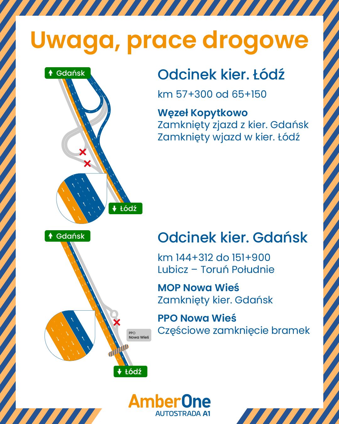 Utrudnienia dotkną także węzła Kopytkowo. Nie będzie możliwości zjazdu z autostrady w kierunku Łodzi na drogę krajową nr 231 ani wjazdu na A1 w tym samym kierunku.