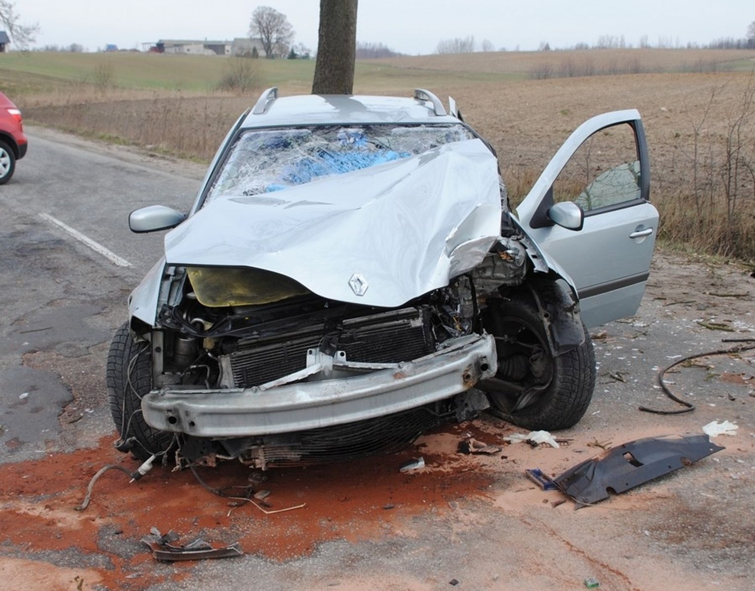 Jak ustalili pracujący na miejscu funkcjonariusze do wypadku doszło, gdy kierująca osobowym renault zjechała na prawe pobocze i uderzyła pojazdem w drzewo. Samochodem tym podróżowały 3 osoby.