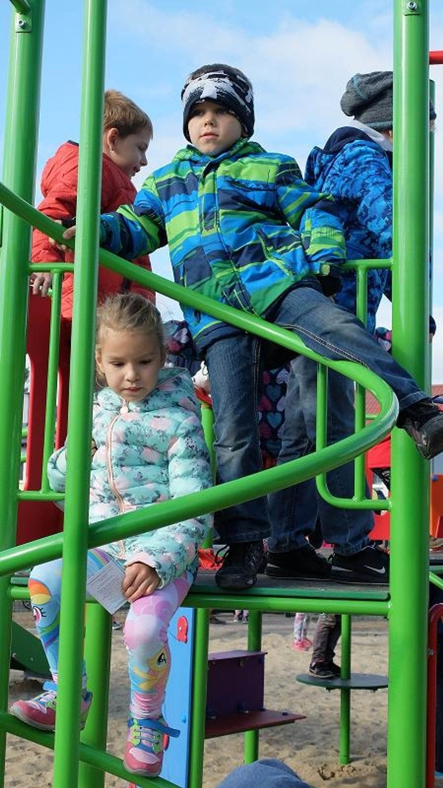 - To było nasze marzenie, żeby mieć nowy plac zabaw – powiedziała dwunastoletnia Paulina. Teraz mamy takie miejsce spotkań, nasz punkt zbiorczy, gdzie zawsze możemy się skrzyknąć, posiedzieć na naszych ławkach młodzieżowych, pogadać, pośmiać się i powygłupiać – dodał trzynastoletni Klaudiusz. Jest nas tu bardzo dużo, czasem zbiera się prawdziwa banda. W tym czasie nasze młodsze rodzeństwo dokazuje na placu zabaw.