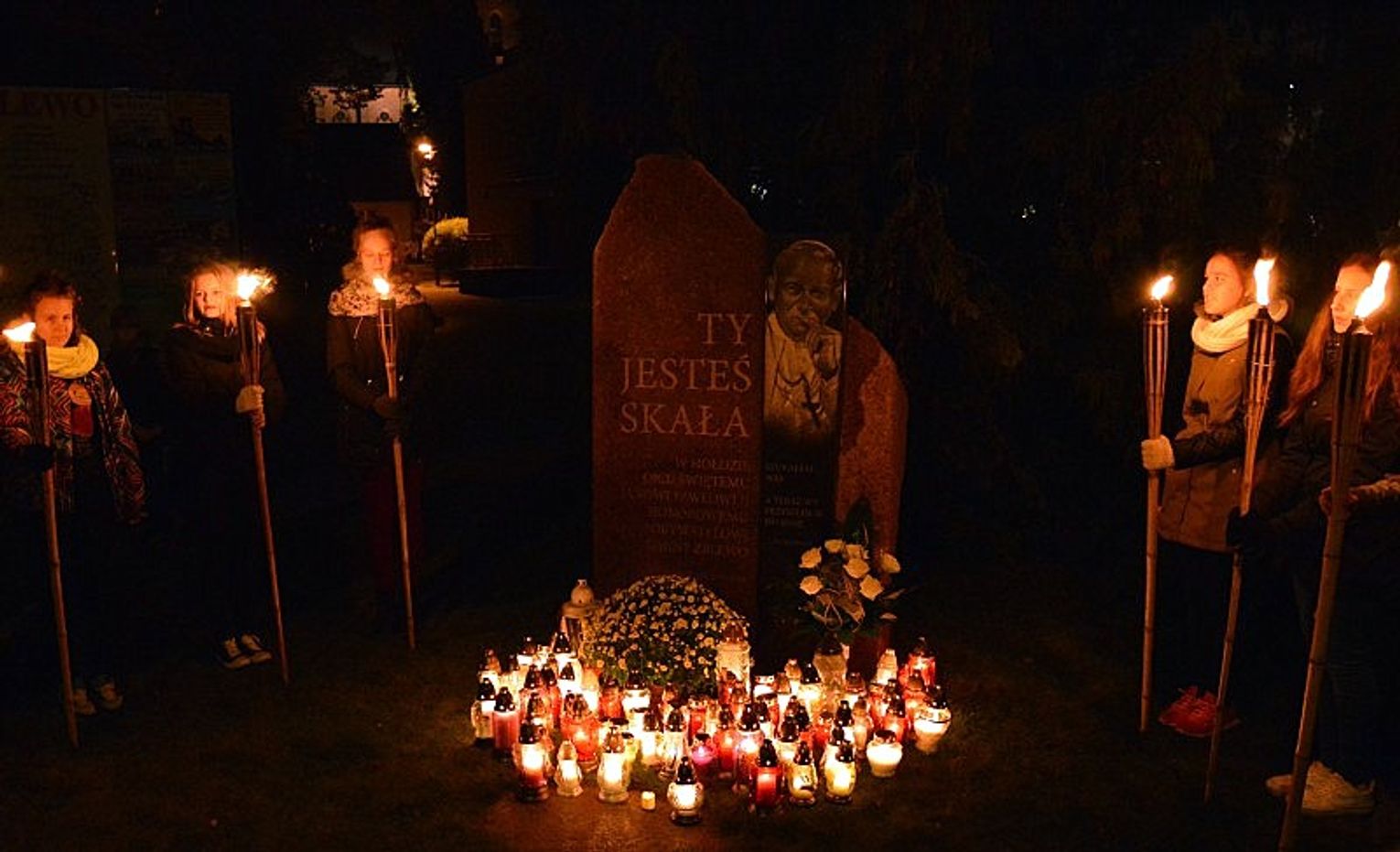 Jak dodał kapłan, dzisiejsza procesja to dziękczynienie za słowo i za gest, za dar i tajemnicę świętego Jana Pawła II. Na zakończenie mieszkańcy złożyli znicze symbolizujące podziękowania, wspomnienie i prośby pod pomnikiem Papieża Polaka.