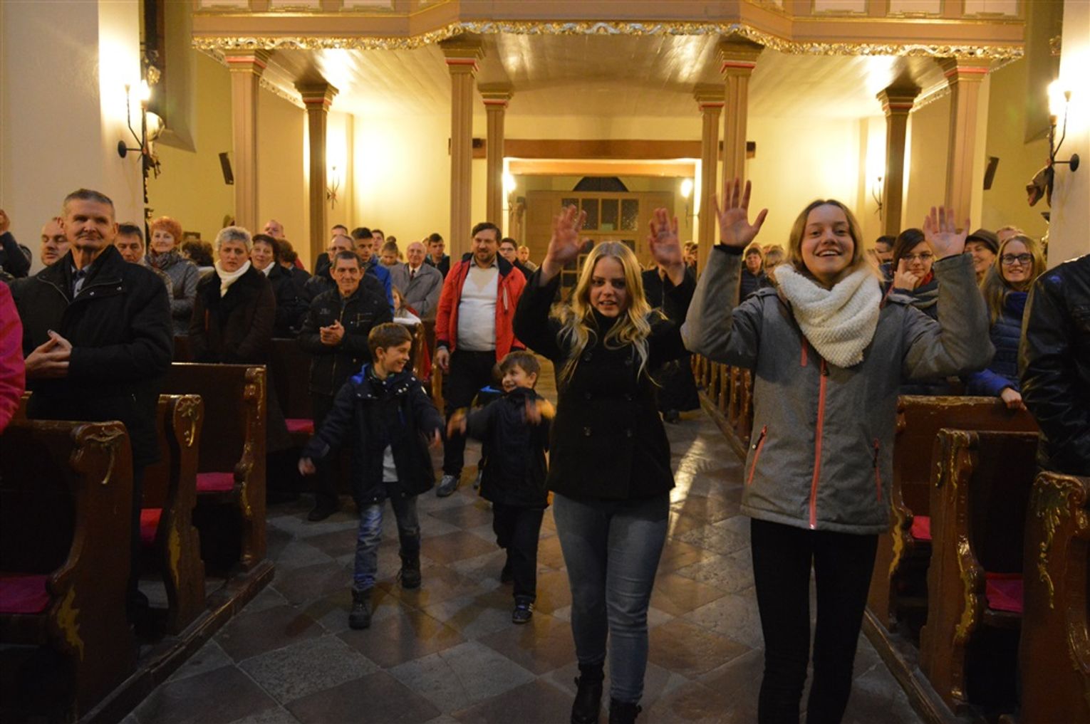 Wieczór Wszystkich Świętych rozpoczął się uroczystą Mszą Świętą prowadzoną przez ks. proboszcza Ryszarda Konefała. Po zakończonym nabożeństwie do kościoła pw. Św. Michała Archanioła wprowadzone zostały relikwie dziesięciu świętych, a także odczytany został ich życiorys. Wydarzenie to urozmaicił zespół ewangelizacyjny „Na cały Głos”, który wykonał mnóstwo kościelnych utworów, oraz zachęcił ludzi do wspólnego śpiewania, klaskania a nawet tańczenia. Po zakończeniu uroczystości w kościele Św. Michała Archanioła, zebrani wierni procesją udali się do kościoła pw. Św. Maksymiliana Marii Kolbego, gdzie nastąpiło zakończenie Wieczoru Świętych.