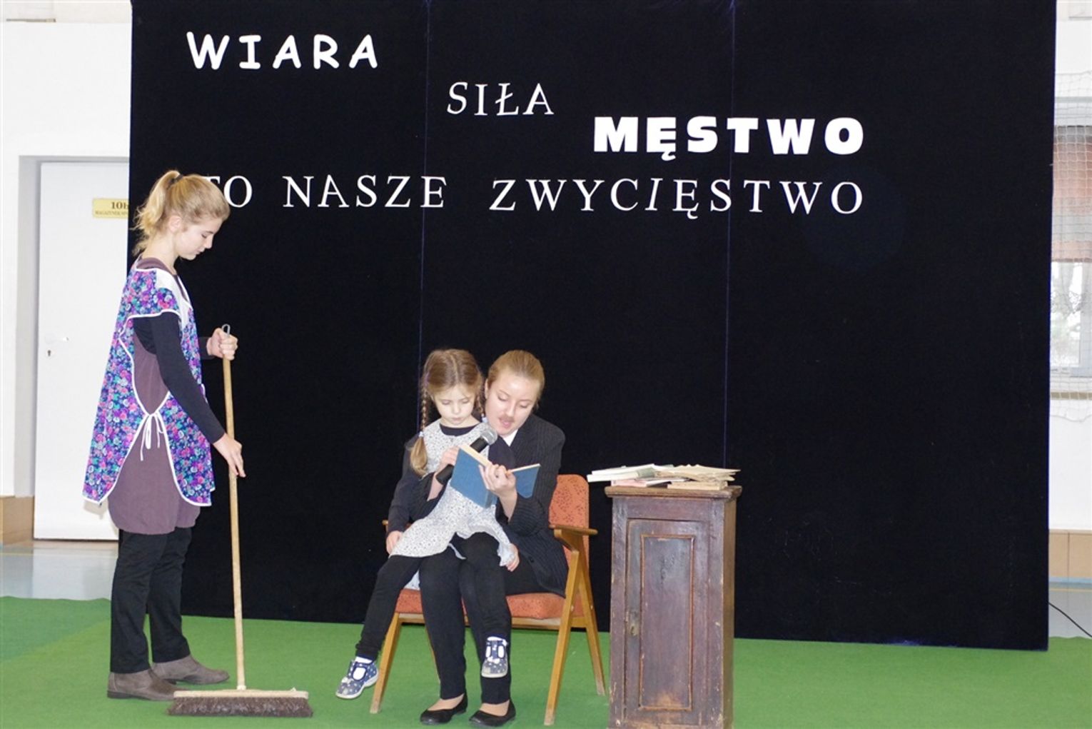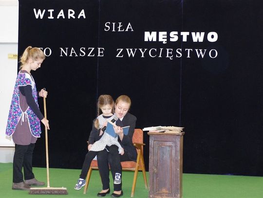 W trakcie apelu uczniowie zaprezentowali spektakl ,który w niezwykle syntetyczny sposób przeprowadził widzów przez lata niezwykle trudnej a czasem okrutnej historii naszego państwa. Uczniowie przedstawili bohaterów i symbolicznie pamięć o nich w postaci zapalonych zniczy. Autorką scenariusza i jednocześnie reżyserem spektaklu jest praprawnuczka Piotra Szturmowskiego pani Aleksandra Turek. Dyrektor szkoły pani Józefa Marchewicz jest prawnuczką patrona szkoły Piotra Szturmowskiego, mało tego w przedstawieniu brał udział prapraprawnuczek patrona szkoły. Tradycją jest ,że w tej szkole od dawna wpajany jest patriotyzm i pamięć o ludziach ,którzy walczyli o wolną Polskę na różnych etapach historii.Zebrana publiczność nagrodziła brawami znakomity występ młodych aktorów dodaje Kazimierz Czarniecki .