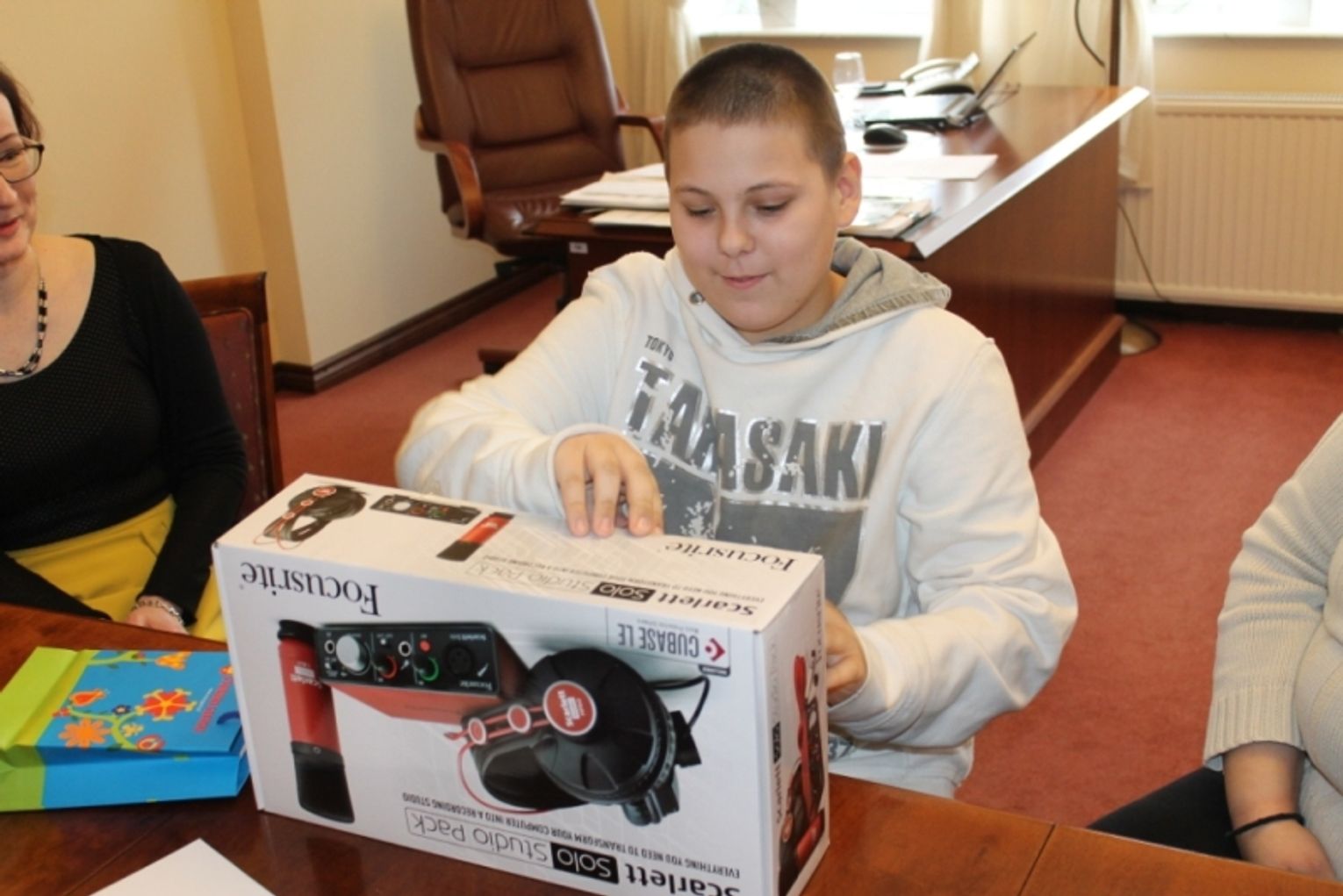 Życzyła chłopcu, by ten sprzęt pomógł mu realizować siebie, a mamie pogratulowała zdolnego syna. Prezydent przypomniał, że będąc w podobnym wieku jak Marcel, marzył o gitarze, której nie mógł długo dostać. Wie dokładnie co to znaczy. Dlatego bardzo się cieszy, że dziś razem z panią Prezes, która też kiedyś udzielała się muzycznie, mogą spełnić te marzenia. Życzył młodemu raperowi sukcesów i wielkiej kariery.