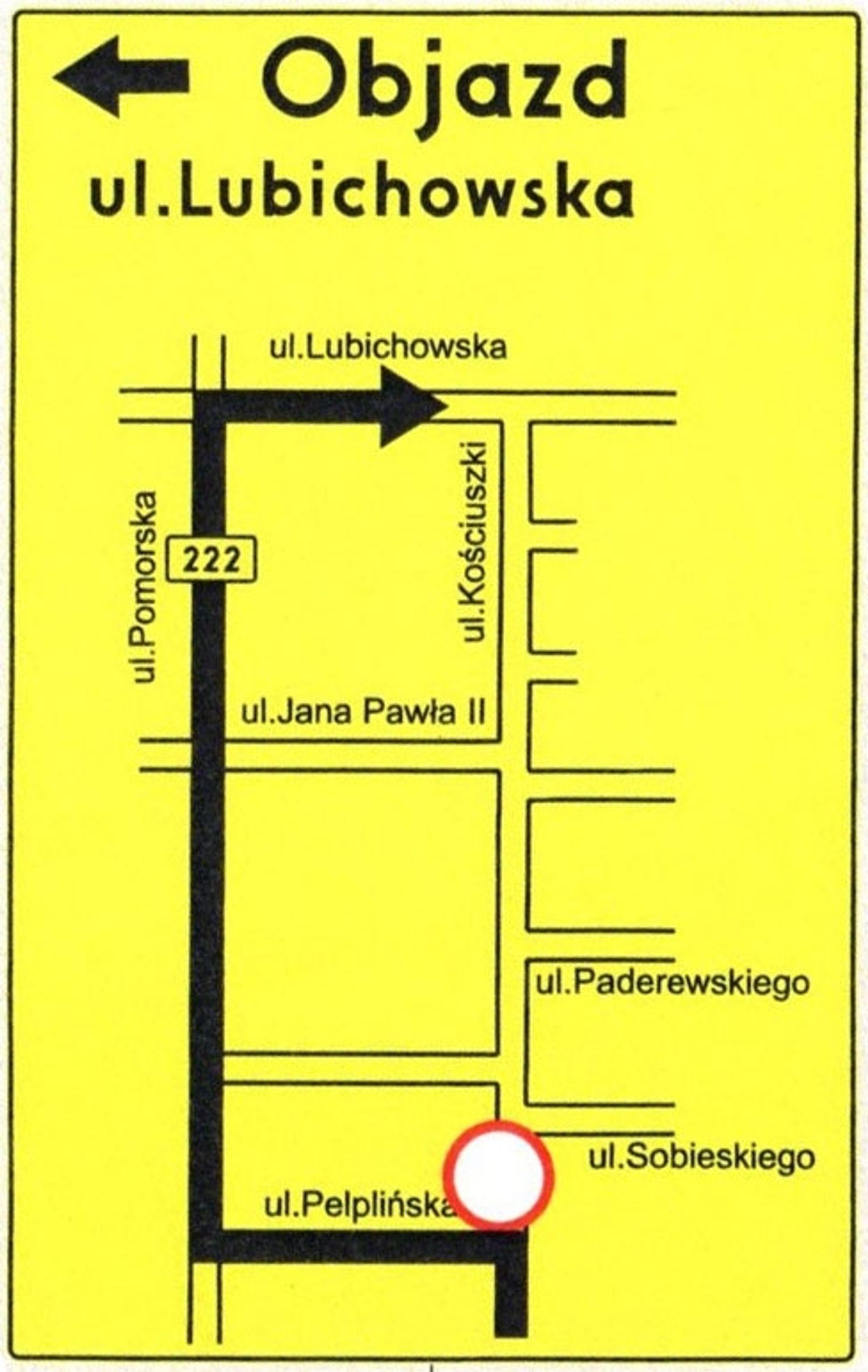 W związku z zamknięciem ulicy Kościuszki na wspomnianym odcinku, od wtorku 20 września obowiązywać będzie nowa organizacja ruchu. Kierowcy, którzy będą chcieli dojechać na ulicę Kościuszki w kierunku ronda Pitagorasa od ronda z ul. Lubichowską będą musieli skorzystać z objazdu ulicami: Aleja Jana Pawła II, Pomorska i Pelplińska. Z kolei objazd w odwrotnym kierunku od ul. Kościuszki do ul. Lubichowska pobiegnie ulicami Pelplińską i Pomorską.