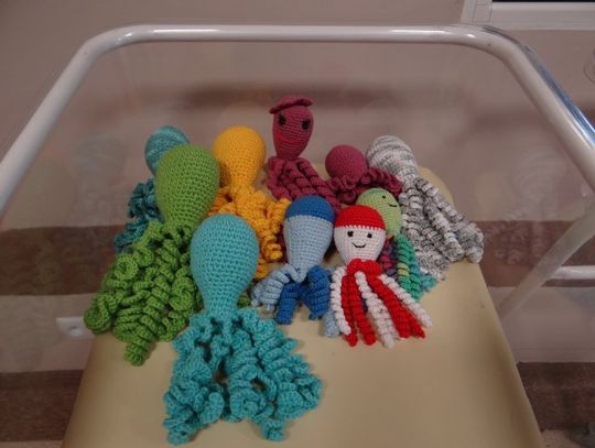 Są śliczne, miłe w dotyku i bezpieczne. Małe maskotki w kształcie ośmiorniczek, które otrzymują wcześniaki w ramach akcji "Ośmiorniczki dla wcześniaków", właśnie dotarły do Kociewskiego Centrum Zdrowia w starogardzie Gd.