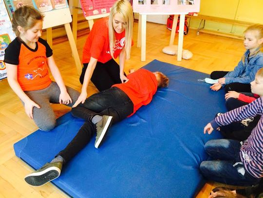 Dzieci utrwaliły sobie wiedzę na temat: telefonów alarmowych; najważniejszych informacji, które należy podać dzwoniąc na numer alarmowy; oceny stanu osoby poszkodowanej; omdleń; padaczki; krwotoku z nosa; zakrztuszenia i resuscytacji krążeniowo-oddechowej.