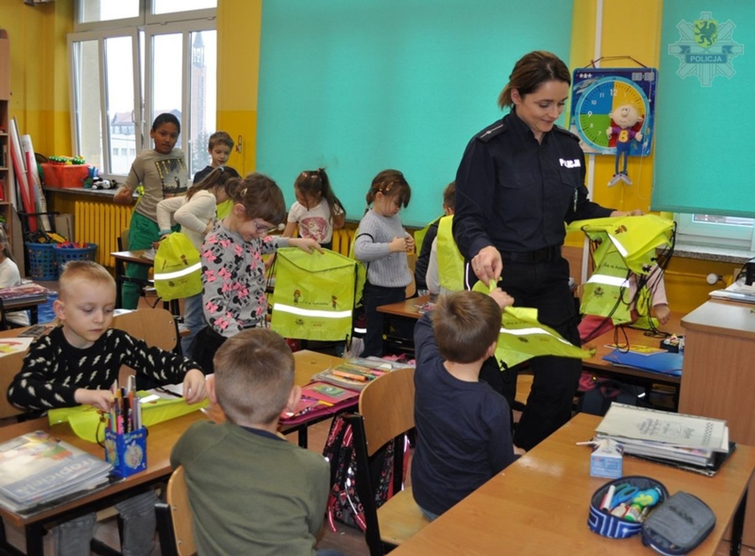 Na zakończenie spotkania policjantka przekazała wszystkim uczniom elementy odblaskowe ufundowane przez Fundację Lotos, których blask ma dbać o bezpieczeństwo małych pieszych. Realizacją tego przedsięwzięcia objęta została grupa blisko 200 pierwszoklasistów.