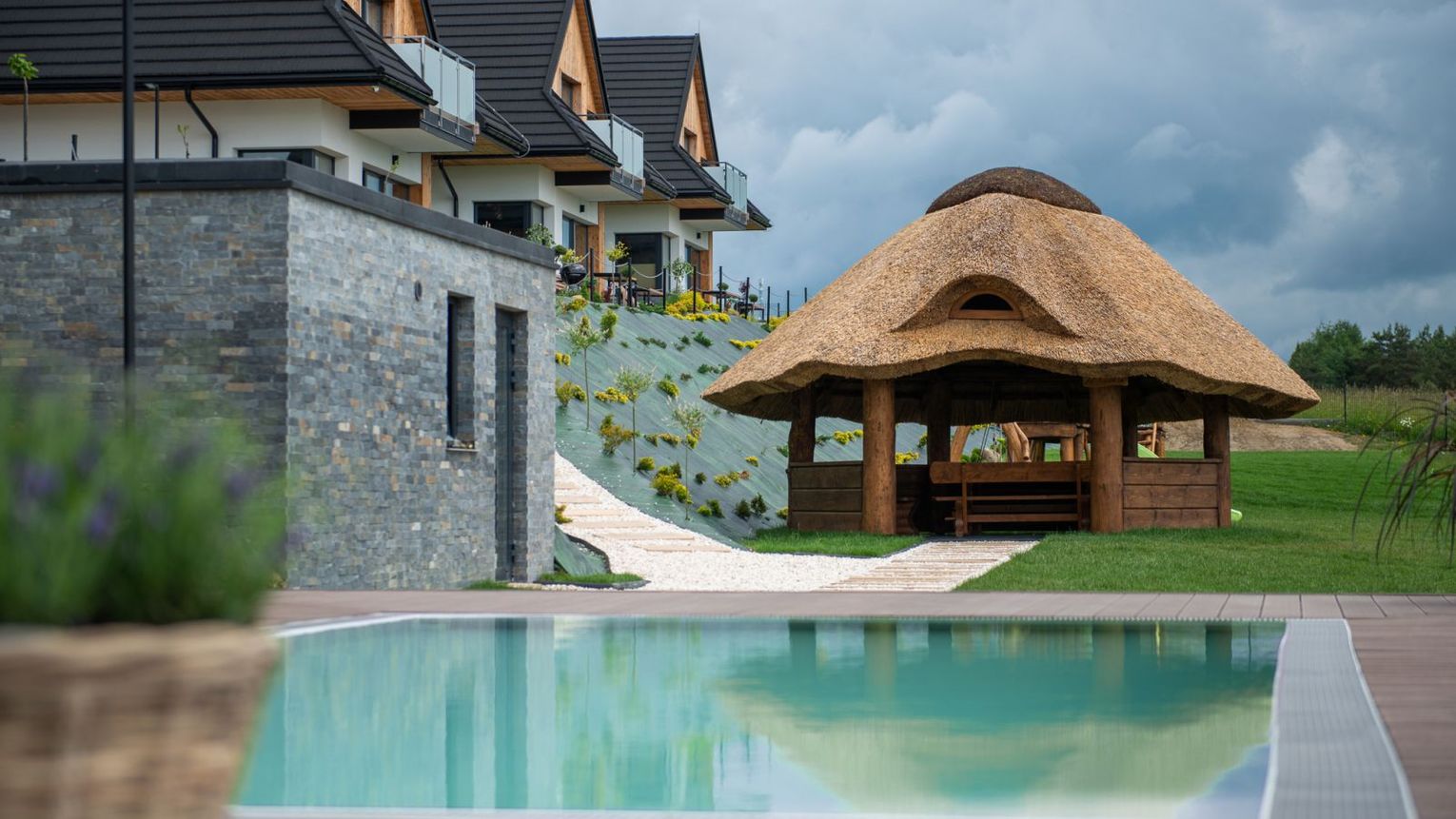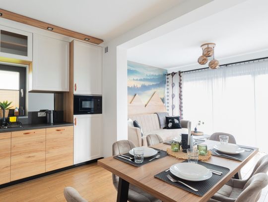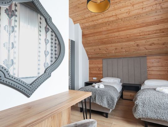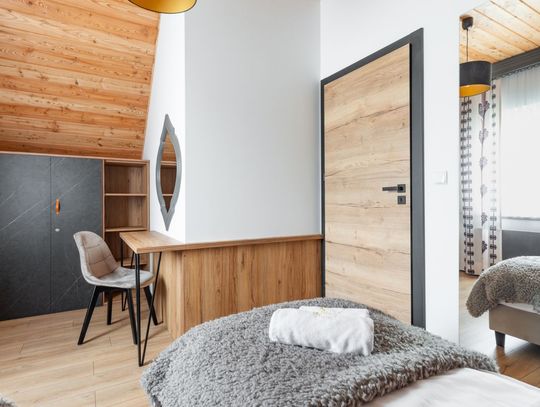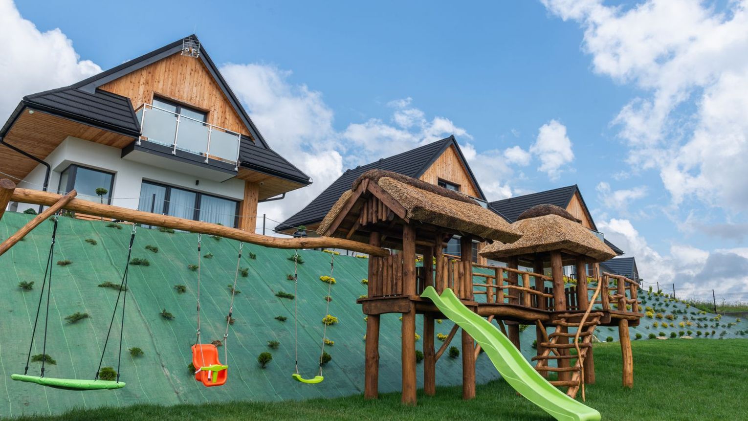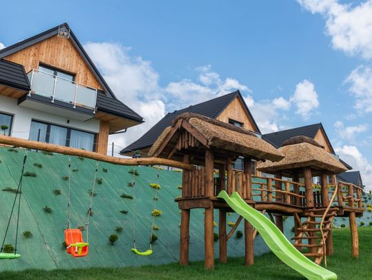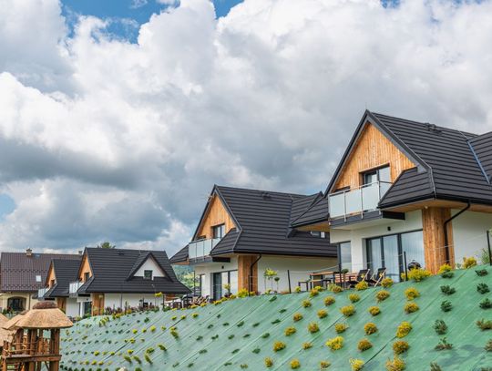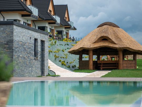 Słoneczne Chatki – Twoje prywatne SPA z widokiem na Tatry Wyobraź sobie poranek z filiżanką kawy w ręku, gdy z salonu rozpościera się panoramiczny widok na ośnieżone szczyty Tatr i taflę Jeziora Czorsztyńskiego. Słoneczne Chatki to kompleks pięciu luksusowych, całorocznych domów o powierzchni $90\text{ m}^2$, stworzonych dla tych, którzy nie uznają kompromisów w kwestii wypoczynku. Każdy dom oferuje dwie przestronne sypialnie z niezwykle wygodnymi łóżkami, dwie łazienki oraz w pełni wyposażoną kuchnię.To, co nas wyróżnia, to strefa Wellness dostępna w cenie pobytu. Odpręż się w saunie suchej lub odetchnij głęboko w grocie solnej. W sezonie letnim czeka na Ciebie podgrzewany basen zewnętrzny, który łączy luksus kąpieli z zapierającym dech w piersiach krajobrazem Podhala.
