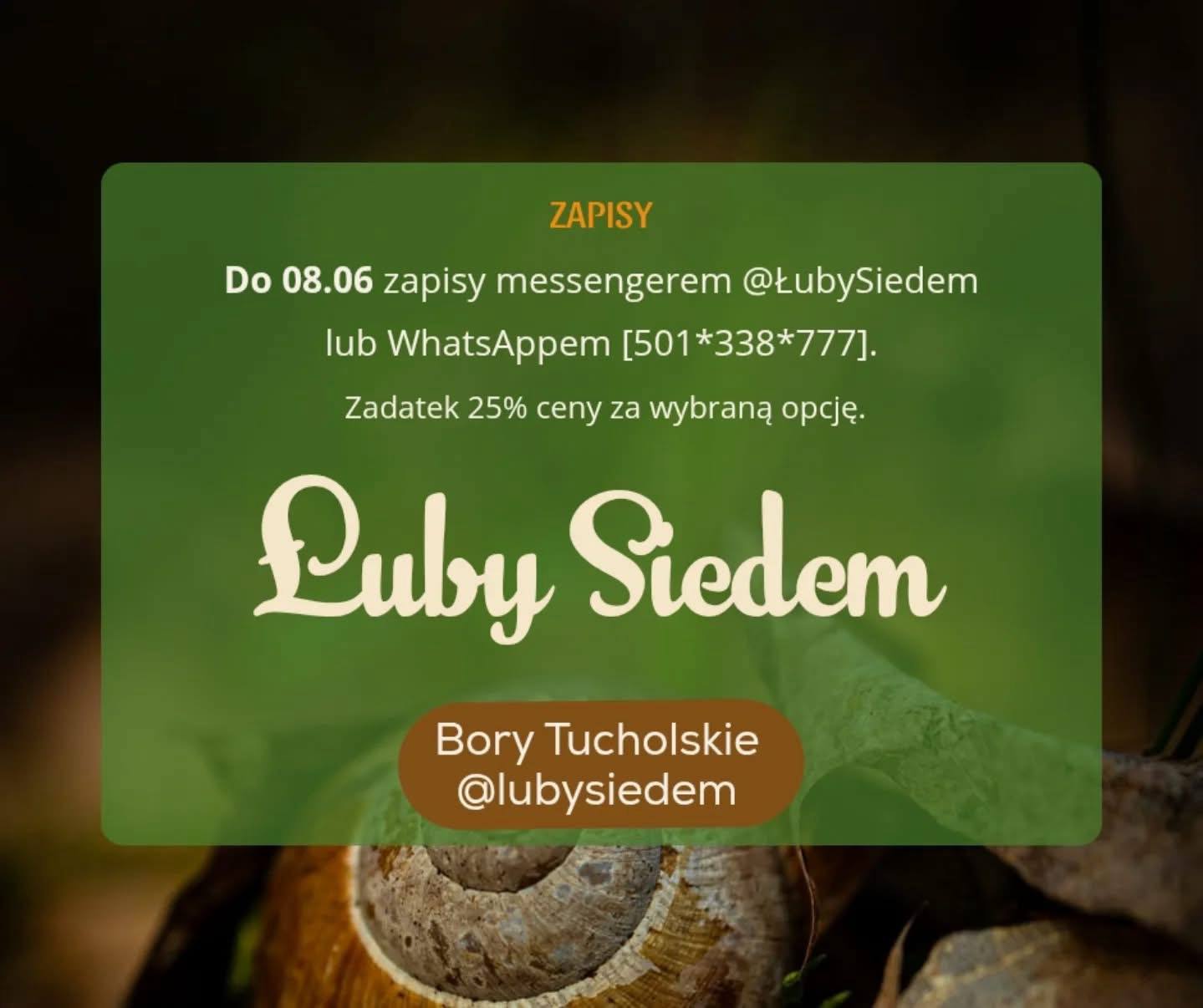 Zapisy do 8 czerwca – Messenger: @ŁubySiedem / WhatsApp: 501 338 777